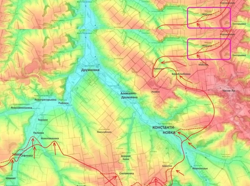 На Константиновском направлении ВС РФ расширяют плацдарм севернее Константиновки (район Веролюбовки и Майского), занята южная часть Марково.