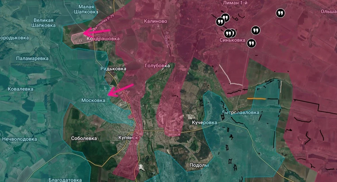 На Купянском фронте тяжёлые бои на западном и восточном берегах р. Оскол. Сражение сейчас представляет собой бои на истощение. Небольшие группы пехоты воюют за контроль над различными точками в городских кварталах, над которыми висят дроны с обеих сторон. Российские подразделения держат очаговую оборону в промзоне и в северной части Купянска. На севере от города наши штурмуют Тищенково, на востоке - позиции ВСУ в районе Куриловки.