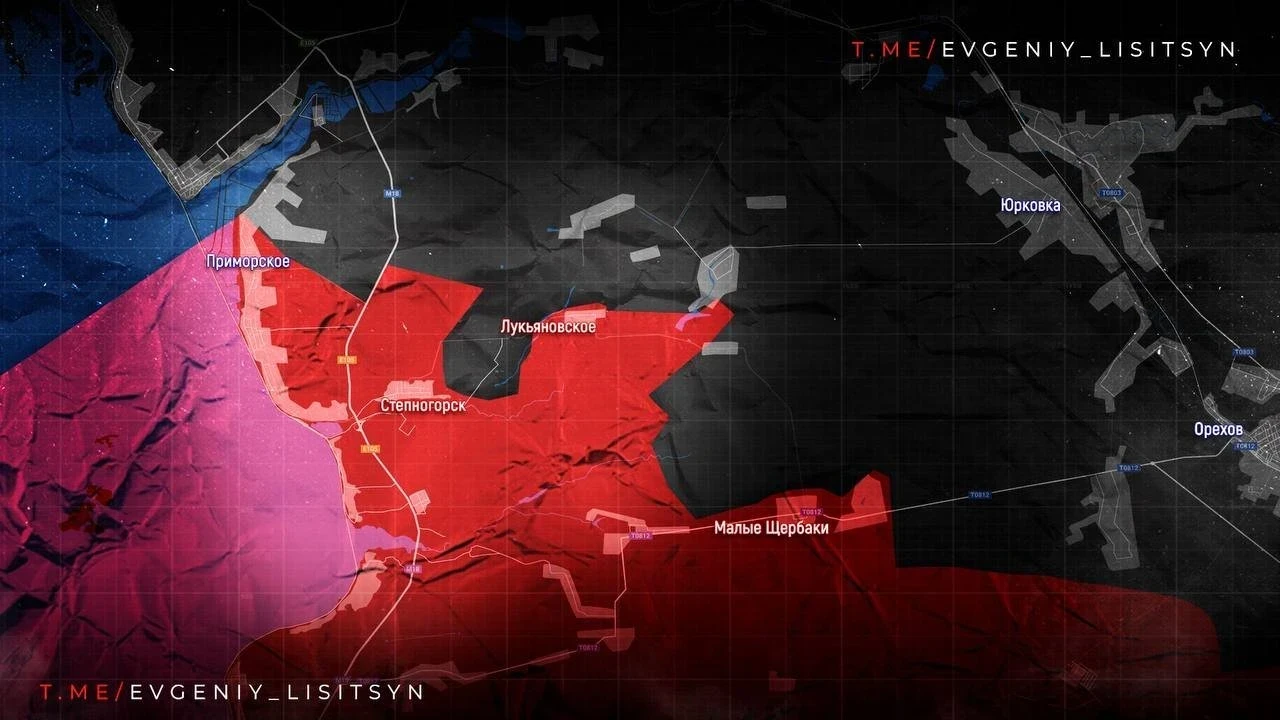 Гуляйпольский участок: За минувшие сутки армия России отразила 11 контратак ВСУ. Опираясь на ранее освобожденное село Зелёное, российские бойцы теснят врага из соседней Святопетровки, а со стороны Доброполья - из Прилук.