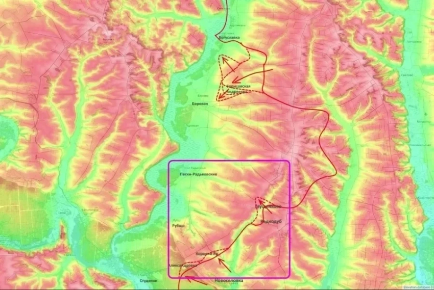 На Боровском направлении, как следует из сводки, российское командование изменило вектор действий после серии контратак ВСУ северо-западнее Боровой. Основной удар был смещен на юго-запад.