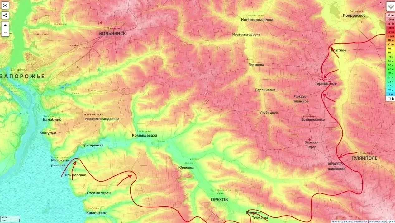 Отмечается, что сейчас подразделения ВС РФ постепенно продвигаются от Гуляйполя в сторону Зализнячного, формируя вокруг него зону безопасности. Аналитики считают, что следующим этапом станет возобновление наступления на укрепрайон ВСУ в районе Терноватого и Воздвижевки с целью охвата Орехова.