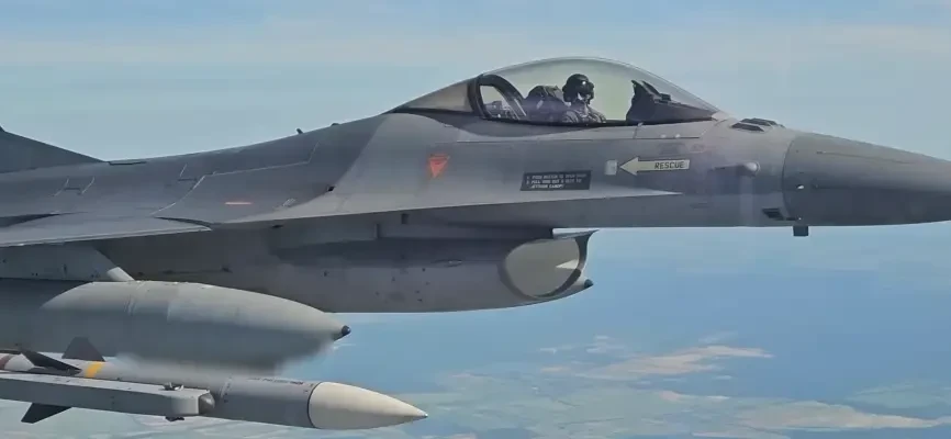 На одном из кадров, снятых с заднего сиденья F-16BM, видно, как ракета Sidewinder улетает, чтобы уничтожить беспилотник. Однако неясно, российский ли это беспилотник или цель во время тренировочного вылета. Сами понимаете, запросто может быть и кадр из записи тренировочного полета.