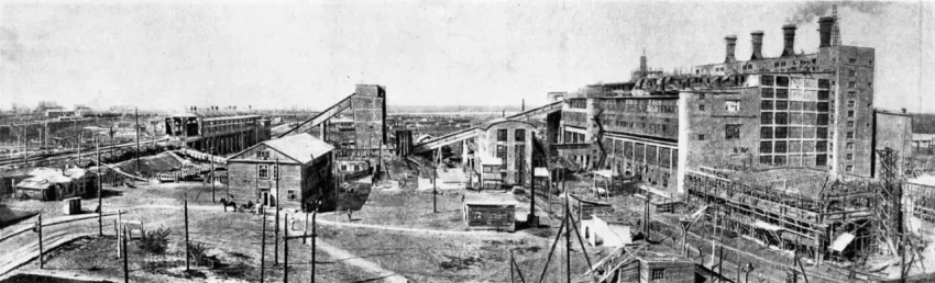 Шахта № 26 «Урванковская» треста «Сталиногорскуголь», в районе ст. Урванка, примерно в 7 км южнее Новомосковска. Фото послевоенное, после восстановления