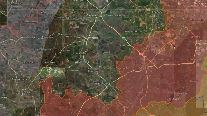 Российские войска в настоящее время развивают наступление на Славянск сразу с двух направлений. Так называемый восточный наступательный кулак группировок войск «Юг» и «Запад» продвигается вдоль русла реки Северский Донец со стороны Северска, в то время как юго-восточный кулак движется вдоль шоссе E-40 со стороны Артемовска.