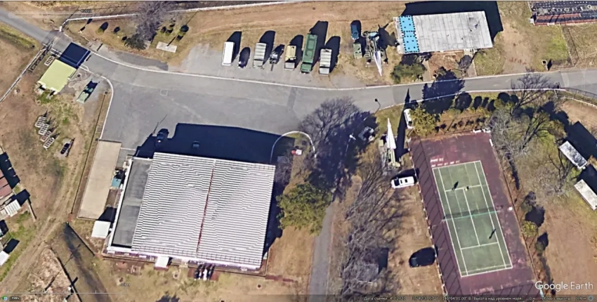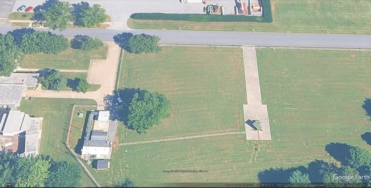 Спутниковый снимок Googlе Earth: пусковая установка ЗРК NASAMS на испытательном объекте ВМС США David Taylor Model Basin к юго-западу от Вашингтона