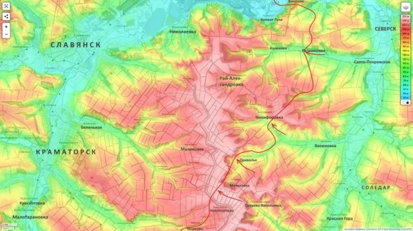 Естественной преградой для продвижения между Привольем и Славянском является канал Северский Донец-Донбасс, и по его западному берегу противник пытается выстраивать оборонительный рубеж. Но менее чем в 10 км южнее российские войска уже вышли на правый берег канала, а потому подразделения ВСУ на создаваемом рубеже могут столкнуться и с крайне болезненным фланговым ударом. Мало того, армия России может этот рубеж обороны и вовсе обойти от Новомарково к западу, значительно приблизившись к Краматорску.