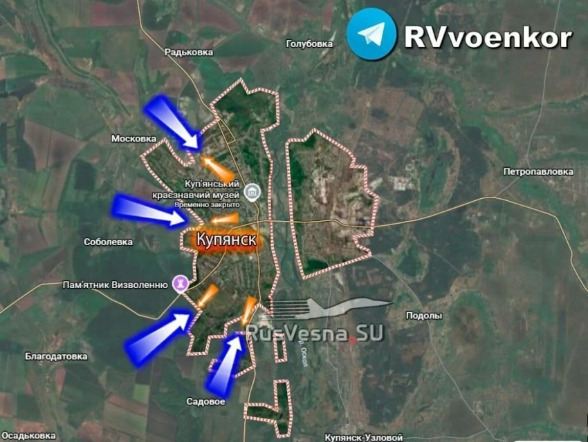 «Из-за неверных докладов о ситуации наверх, резервы, которые „не понадобились“ для взятия и зачистки Купянска, были переброшены на другие участки», - подчёркивает «Рыбарь».