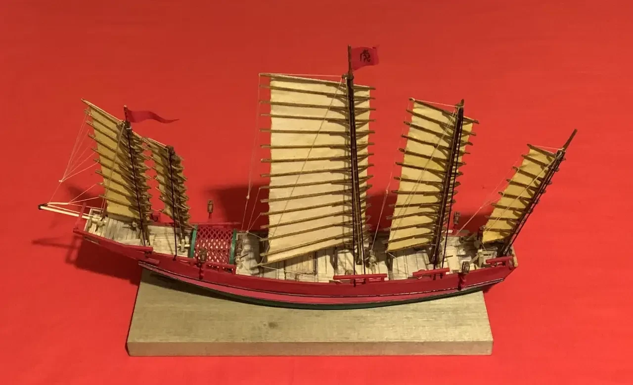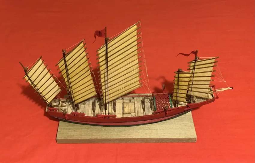 Модель китайской джонки из набора деревянных деталей китайского производства. Фотография автора