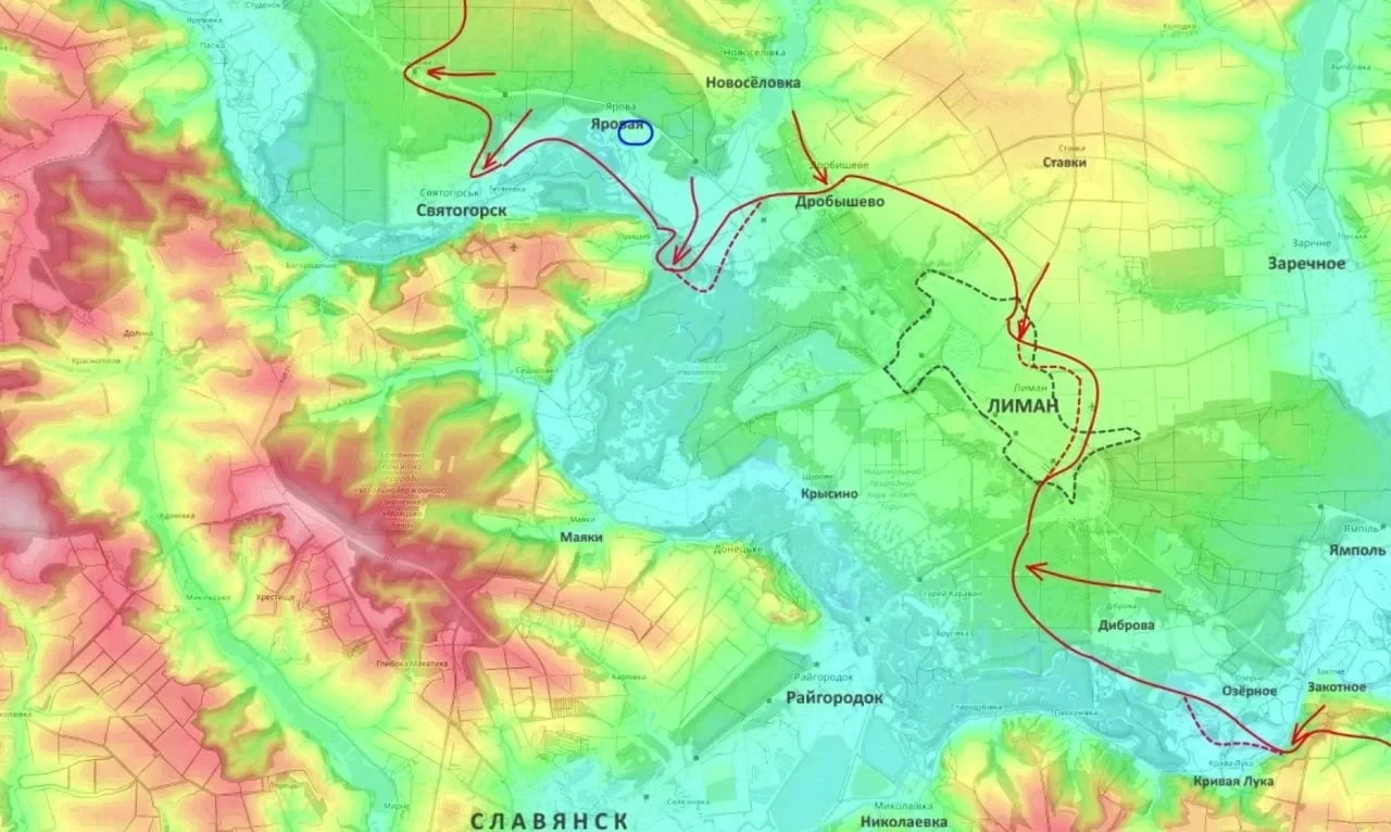 Штурм Лимана. Бои перешли в городскую черту. Российские штурмовые отряды ведут бои в районе железнодорожного вокзала и вбивают клин со стороны Новоселовки. Украинские источники характеризуют ситуацию как критическую - пути снабжения отрезаются один за другим.