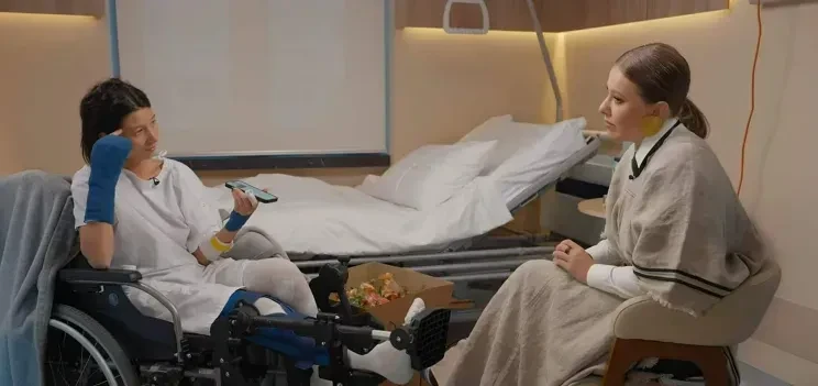 Юлия Ван после нападенияЮлия Ван с дочерью и лечащим врачом