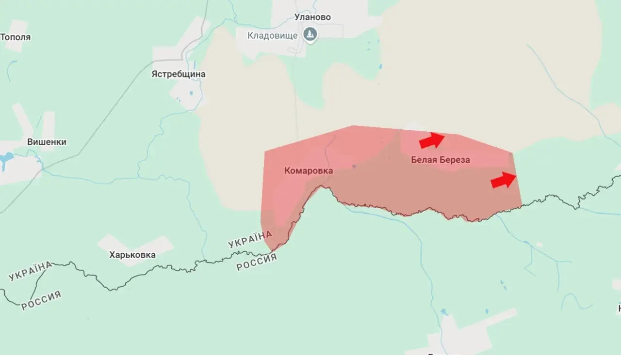 Белая Берёза расположена рядом с ранее освобождённым селом Комаровка. Этот участок наряду с упомянутым выше урочищем противник использовал как позиционный район для обстрелов российской территории - в первую очередь населённых пунктов Рыльского района Курской области. Оттуда же нередко запускались дроны и ракеты на Курск. Теперь противник с потерями отходит севернее - в направлении Уланово, за которым находится участок автомобильной дороги Москва-Киев (на украинской территории - Е391).