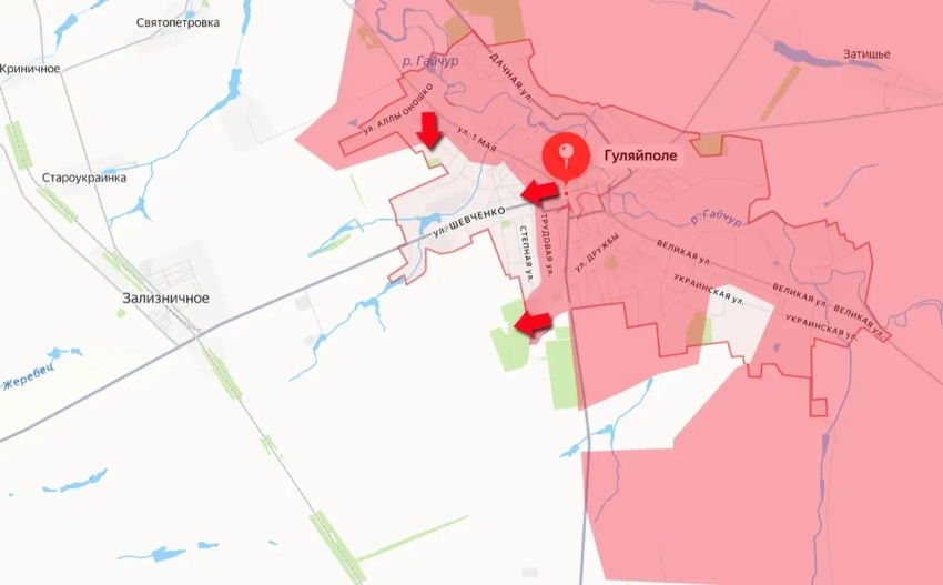 Развивая наступление, штурмовые группы ВС РФ при поддержке дроноводов, артиллерии и механизированных групп прорвались в западную часть Гуляйполя, выйдя за улицу Трудовая.