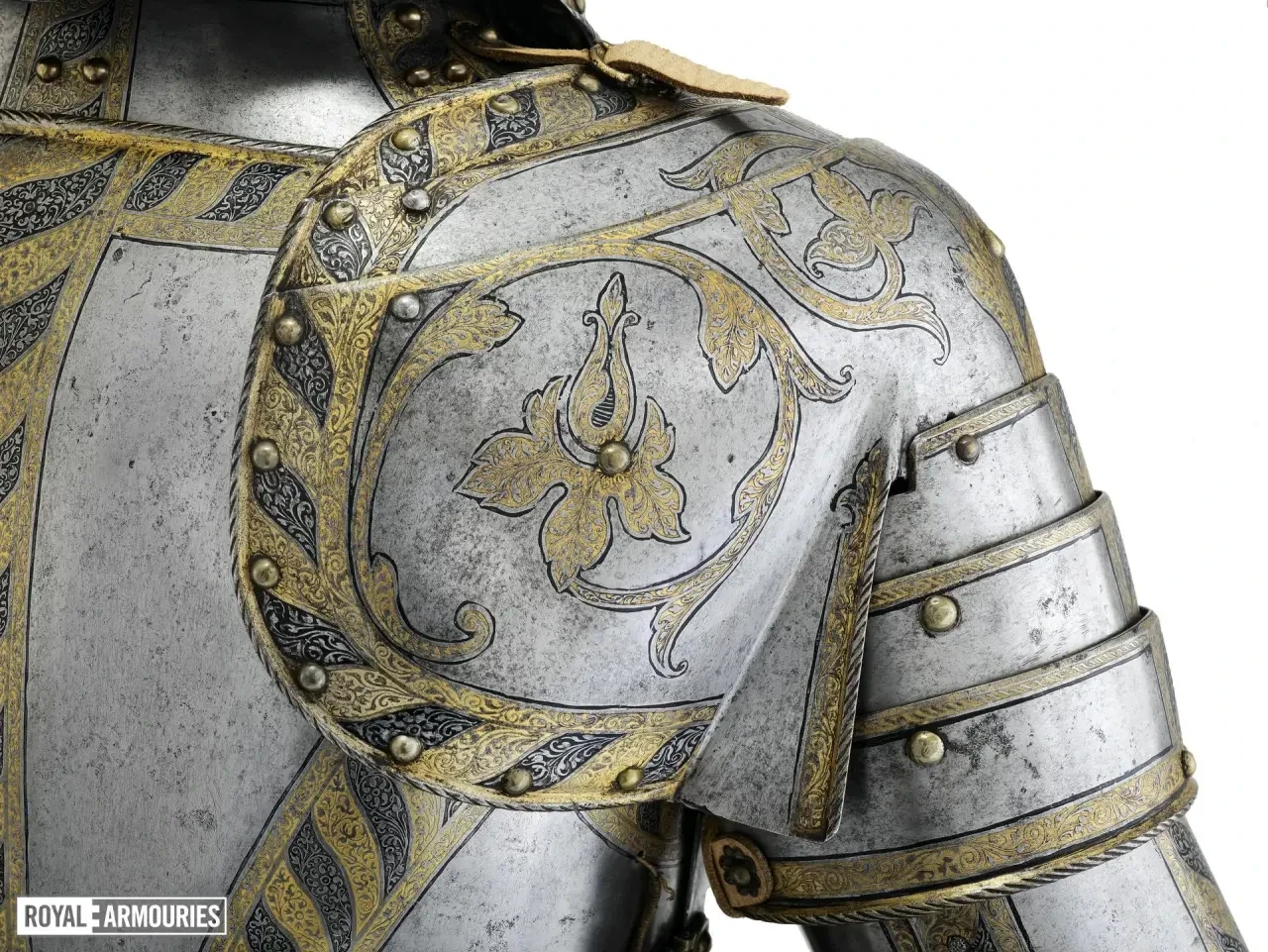 Левый наплечник «доспеха в три четверти» сэра Джона Смайта, который экспонируется в Королевском арсенале в Тауэре