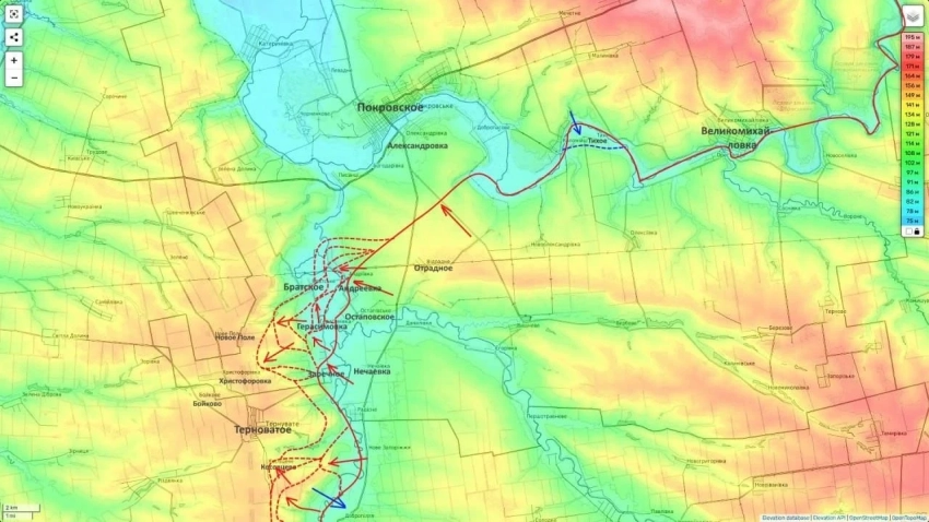 По его словам, продвижение произошло за считанные дни. Сейчас прорыв охватывает более 20 километров фронта и в отдельных районах достигает глубины свыше 8 километров, что уже приобретает оперативно-тактическое значение. По оценке блогера, это создает серьезные проблемы для ВСУ и может повлиять на дальнейшее развитие ситуации в регионе.