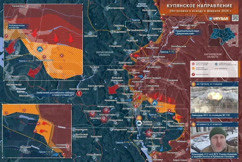 Купянское направление по-прежнему остаётся одним из наиболее проблемных. Так оценивает положение в этом направлении по ситуации на вечер 4 февраля Telegram-канал "Рыбарь".