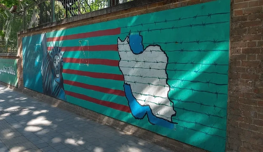 На фото — здание бывшего посольства США в центре Тегерана. С 1980 года здание используется для различных нужд иранскими организациями. После избрания Дональда Трампа президентом США в 2017 году и возобновления санкций против Ирана из-за антииранской позиции Трампа было решено превратить здание бывшего посольства США в антиамериканский музей.