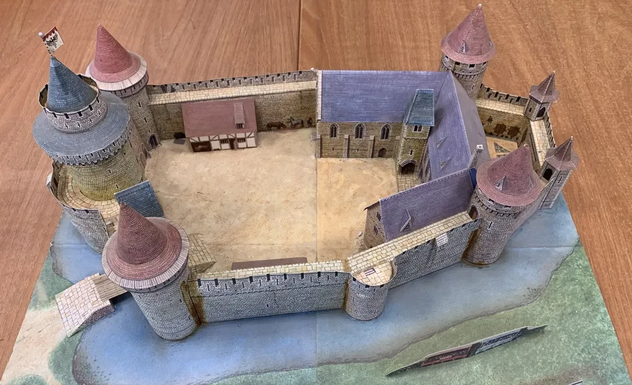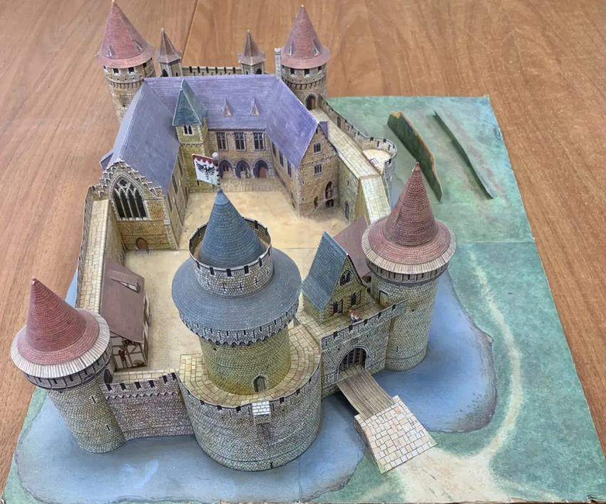 Макет средневекового рыцарского замка, склеенный из набора бумажных разверток. Находится в пензенской школе № 47. Фотография автора