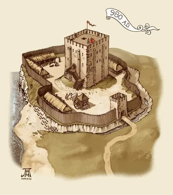 Замок с донжоном и квадратной воротной башней X в. Такими были первые башни в замках и крепостях Западной Европы