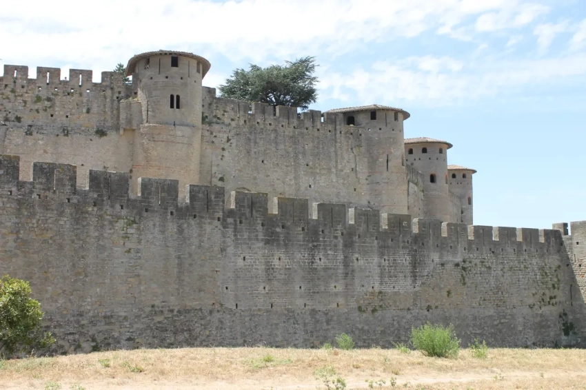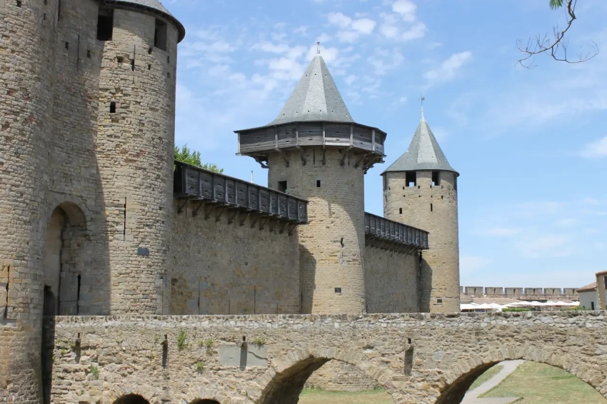 Реально эти башни выглядели вот так: стена с башнями крепости Каркассон. Фотография автора