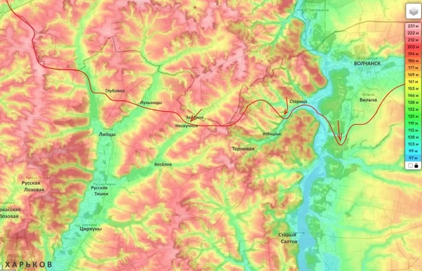 Харьковская область: возобновилась активность на Липцевском плацдарме (освобождено Зеленое, атака на Нескучное). Восточнее, на Купянском направлении, идет тяжелая работа по выдавливанию противника за реку Оскол, но главный замысел виден севернее - на Большебурлукском выступе.