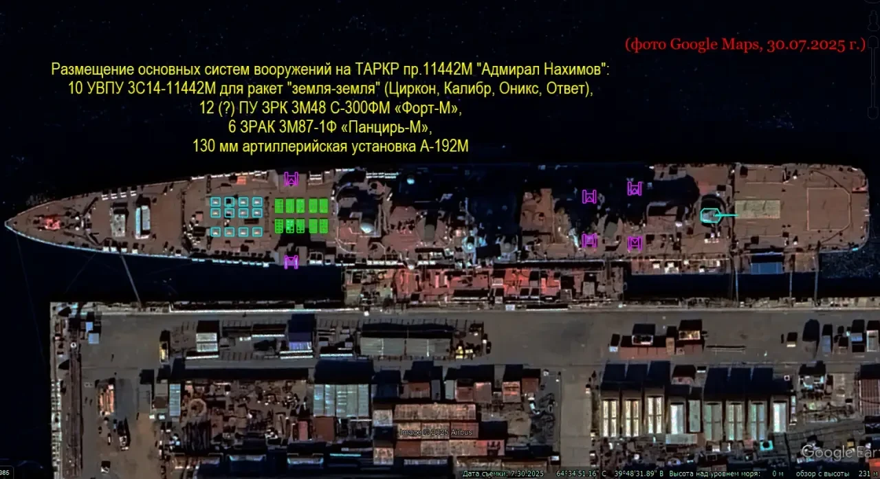 Четыре построенных фрегата пр. 22350, несущих в сумме 64 ячейки УВП, вряд ли можно приравнять по ударной мощи к модернизированному «Нахимову». Ни один из них даже на крейсерской скорости не сможет добраться без дозаправки до точки пуска «Калибров», скажем, по Норфолку. Да и шансов выжить в таком походе в условиях даже конвенционального конфликта с США что у одиночного корабля, что у всей 43-й ДиРК по состоянию на начало 2026 года практически нет. При таких обстоятельствах и в условиях незавершённого военного конфликта средней интенсивности вывести из состава флота мощный крейсер в резерв или на утилизацию будет не ошибкой, а преступлением. Раз уж в стране утрачены компетенции по строительству крупных надводных кораблей, то, чтобы сохранить имеющиеся в настоящее время, после ввода в строй «Нахимова» необходимо провести модернизацию и «Петра Великого».