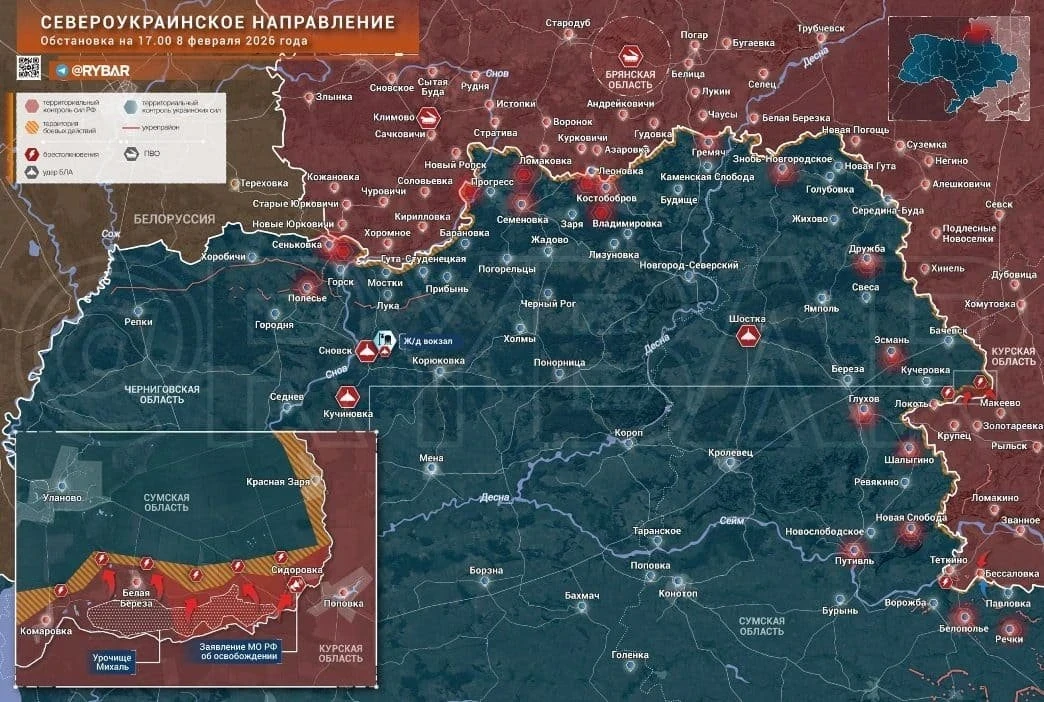 Армия России освободила от Вооружённых сил Украины (ВСУ) село Сидоровка у приграничья, продвинувшись на 4 километра от освобождённой ранее Белой Берёзы. Благодаря этому плацдарм в Глуховском районе расширился до 20 квадратных километров, пишет аналитик Олег Царёв. Кроме того, бойцы взяли под контроль урочище Михаль, что позволяет выпрямить ЛБС на значительном промежутке.
