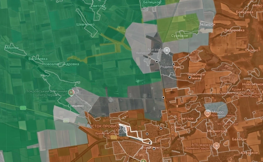 На Красноармейском направлении российские войска добились тактических успехов в районе Сергеевки и Гришино, продвигаясь к северо-западу от Родинского и обходя Белицкое с юга.