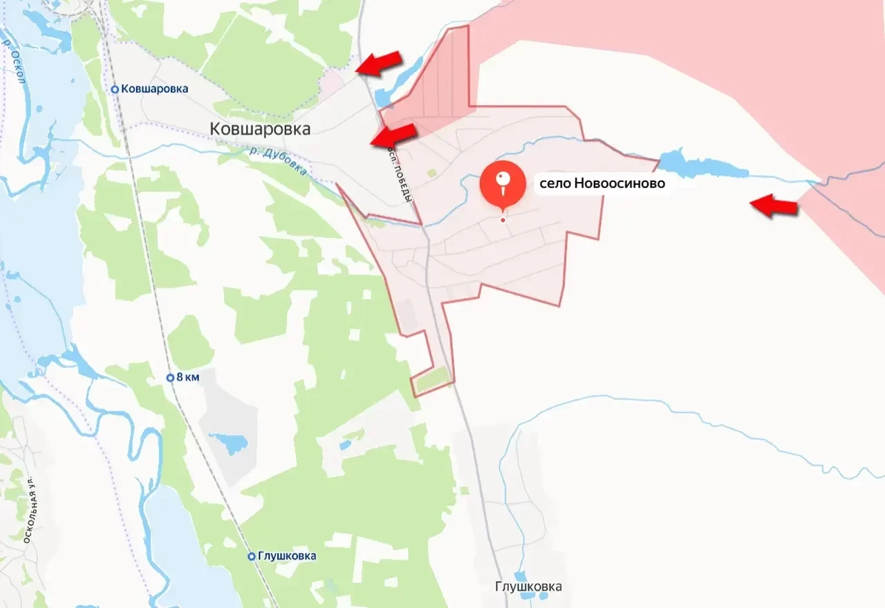 Продвижение к Ковшаровке наших войск идёт и с востока. На этом участке фронта подразделения армии России подошли к селу Новоосиново, где продолжаются бои, сообщает "Военное обозрение".