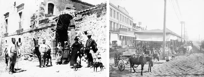 На фото слева: город Пьяна-деи-Гречи (ныне - Пьяна-дельи-Альбанези). На фото справа: сицилийский дворик. Первая половин XX века