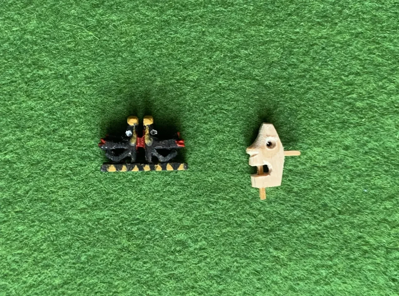 Фигурки на форштевне на «голова» вырезаны из липы модельным ножом и борами и тоже скопированы с модели Френсиса Пиммеля. Глаза нижней головы тоже из перламутра! Другая еще не покрашена
