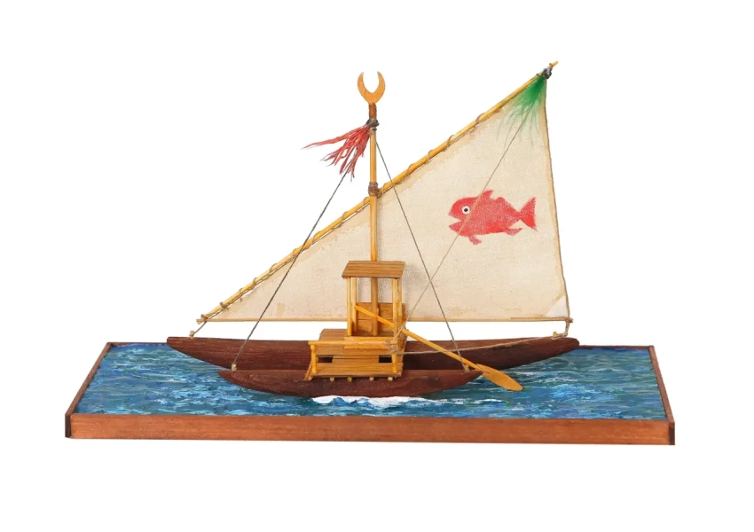 Модель каноэ и весла с о-ва Сан-Кристобаль. Фото из книги Генри Брума Гуппи. «Соломоновы о-ва и их народы» (1887)
