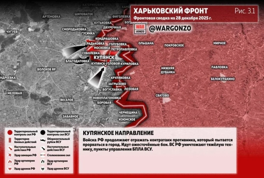Обстановка на Купянском направлении: карта боевых действий на сегодня, 28.12.2025
