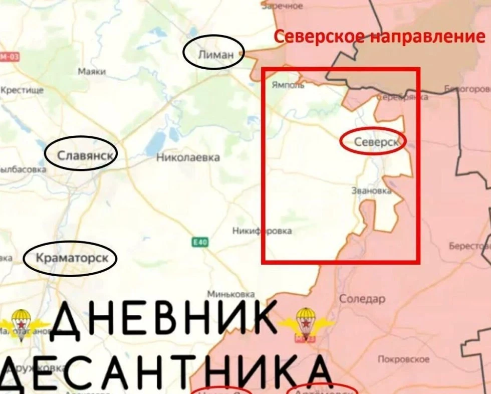 На западе от Северска армия России выравнивает линию фонта, постепенно наращивая давление на ВСУ юго-восточнее Красного Лимана. Российские бойцы имеют тактическое преимущество в Резниковке, продолжают выбивать противника из мощного укрепрайона в Закотном, есть продвижение западнее села. Идут бои за Озёрное.