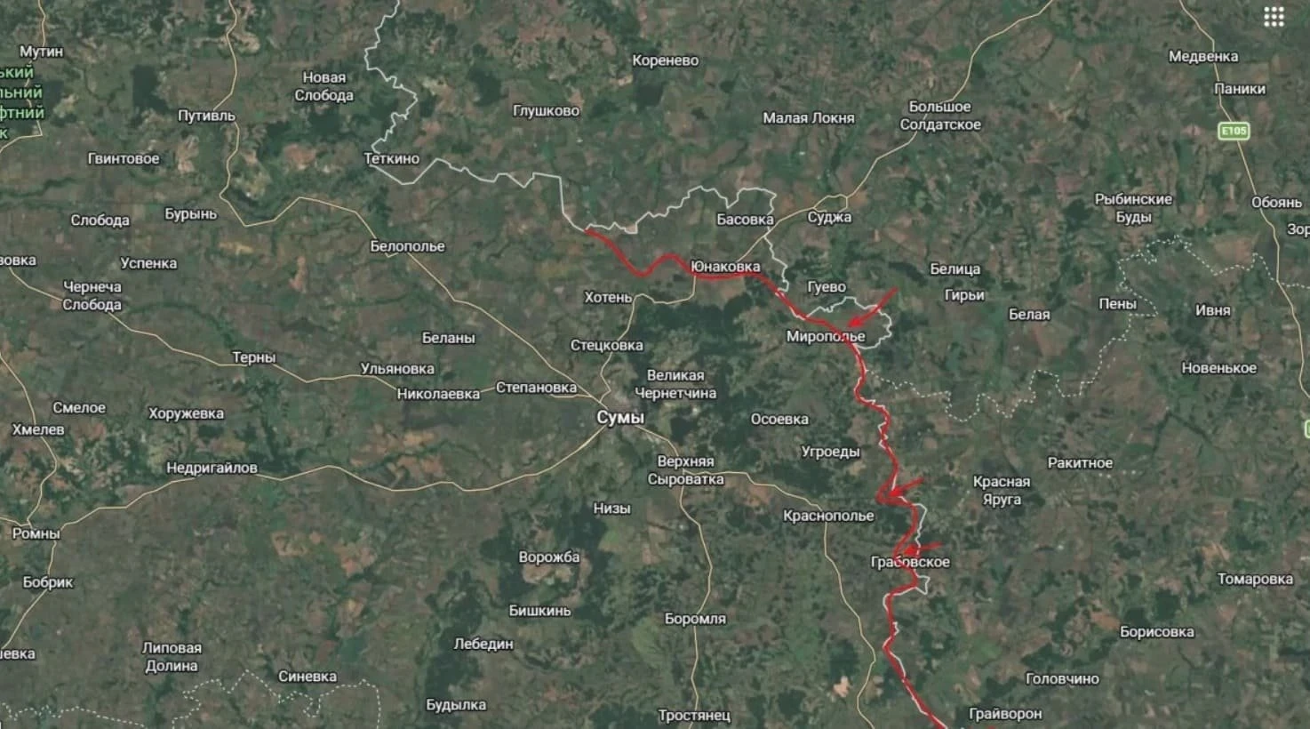 В ходе последних боев российские военные заняли село Покровка, которое находится совсем рядом с Краснопольем. Подоляка сообщает, что сейчас бойцы стараются пройти дальше - в сторону Михайловки и Новодмитровки.