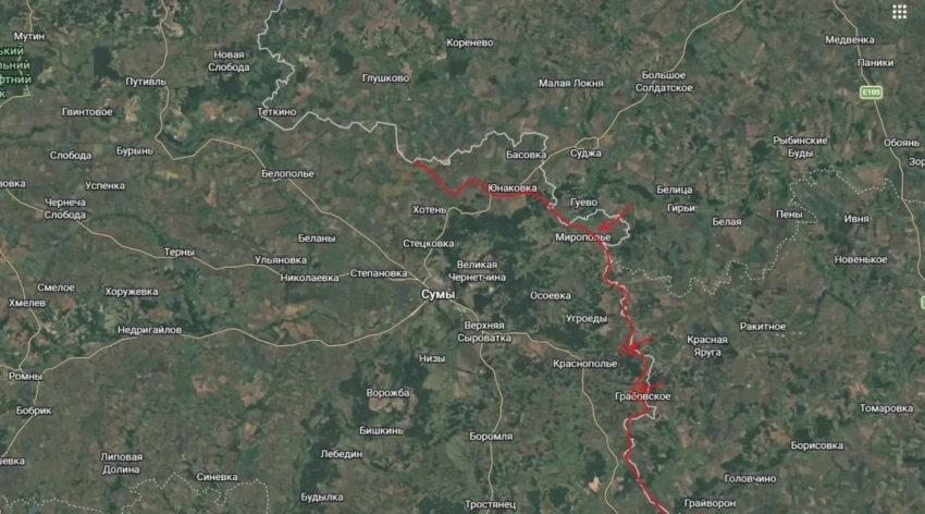 Бойцы Вооружённых сил Российской Федерации (ВС РФ) продолжают двигаться в Сумской области и, судя по всему, начинают обходить Сумы с юга. Об этом рассказал военный блогер Юрий Подоляка в своём последнем обзоре.