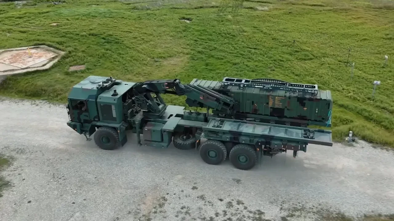 В состав комплекса входят самоходная пусковая установка, два типа ракет, транспортно-заряжающая машина и ряд вспомогательных средств. СПУ и ТЗМ построены на специальных шасси высокой грузоподъёмности. Любопытно, что показанная ранее боевая машина выполнена на шасси Volat белорусского производства, тогда как в качестве ТЗМ используется немецкая платформа.
