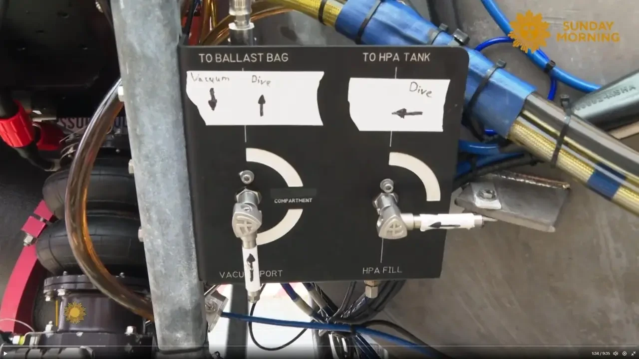Балластная система предназначалась для дифферентовки, погружения и всплытия аппарата. Она состояла из комбинации балластной цистерны и сбрасываемых грузов. В верхней части корпуса был установлен открытый снизу эластичный «мешок», служивший балластной цистерной. Вместе с системой воздуха высокого давления (ВВД) он обеспечивал достижение желаемого подводного состояния с положительной, нейтральной или отрицательной плавучестью. Клапанами продувки и вентиляции балластного «мешка» управлял компьютер, обеспечивающий желаемый уровень плавучести. Запас ВВД под давлением около 700 кг/см² хранился в 40-литровом баллоне.
