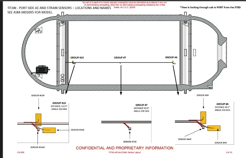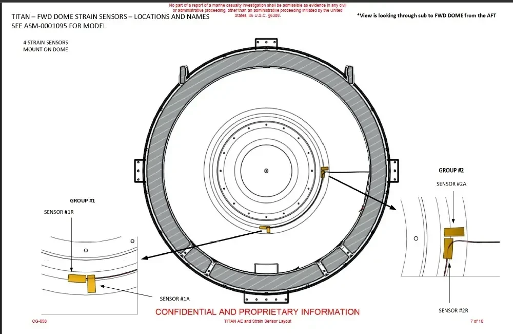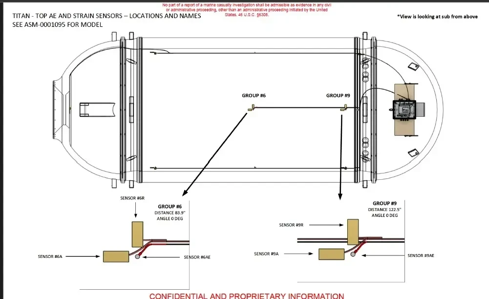 В оптимизированной конструкции, представленной в технико-экономическом обосновании компании Боинг, толщина корпуса из углепластика составляла 7 дюймов. Однако компания OceanGate уменьшила эту толщину для окончательного варианта «Титана» до 5 дюймов, при этом ключевым отличием стало исключение слоев, ориентированных под углом 45˚, из окончательной схемы укладки углепластика. В предварительном отчете Боинга указывалось, что таблицы допустимых деформаций не поддерживают схемы укладки без слоев, ориентированных под углом 45˚. Несмотря на это, в окончательной конструкции «Титана» использовались только кольцевые и осевые слои углепластика, однако никто из участников проекта, опрошенных MBI, не смог объяснить, почему были исключены слои, ориентированные под углом 45˚.