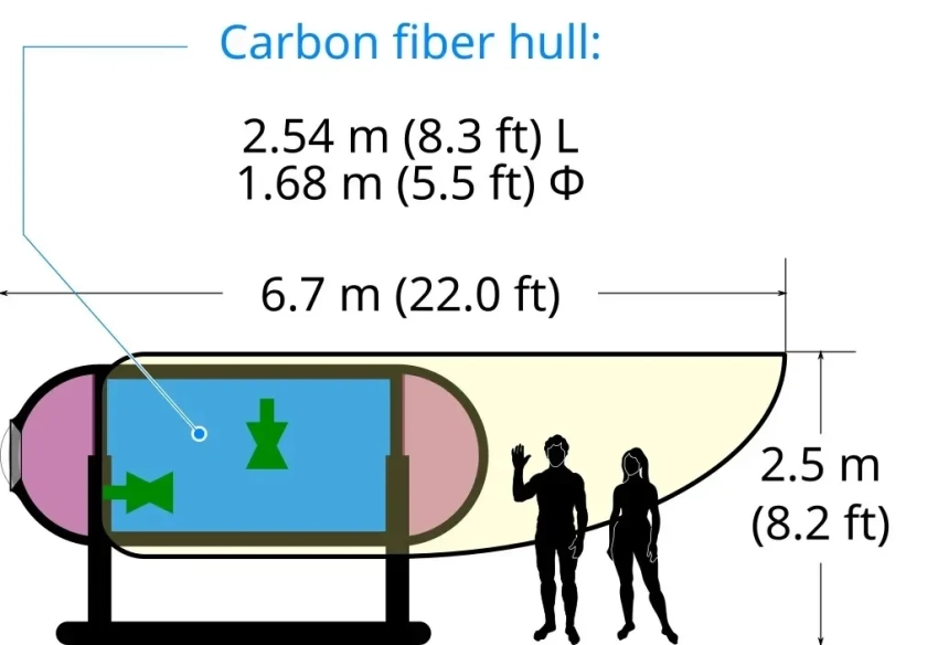 Начнем с технического описания «Титана». Он был разработан OceanGate в сотрудничестве с NASA, Университетом штата Вашингтон и фирмой «Боинг» и вступил в строй в 2018 году. Стоимость проектирования, постройки и испытания аппарата составляла около 5 млн долларов.