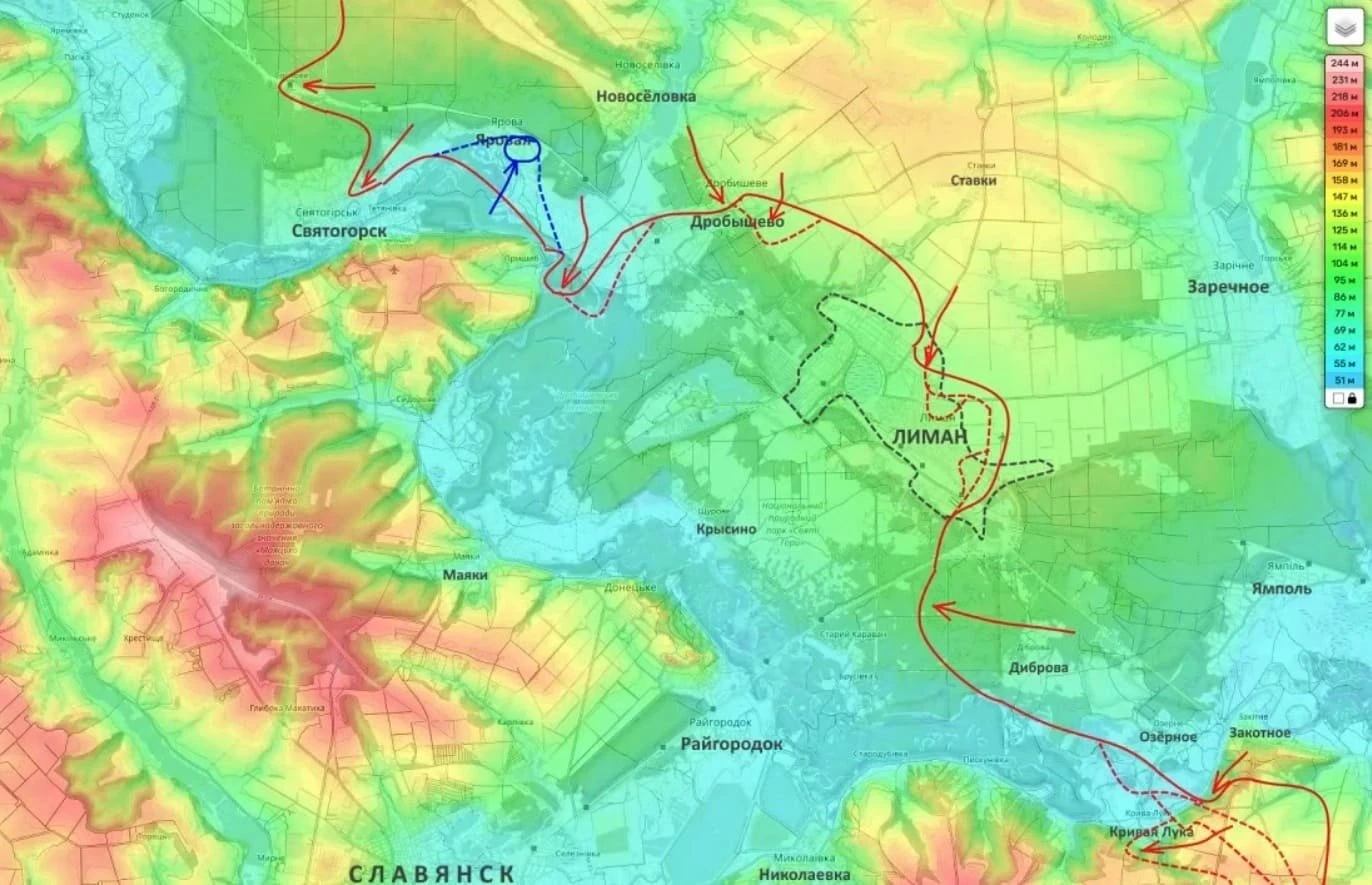В свою очередь на Лиманском направлении активная фаза боевых действий имеет место внутри Лимана и Дробышево.