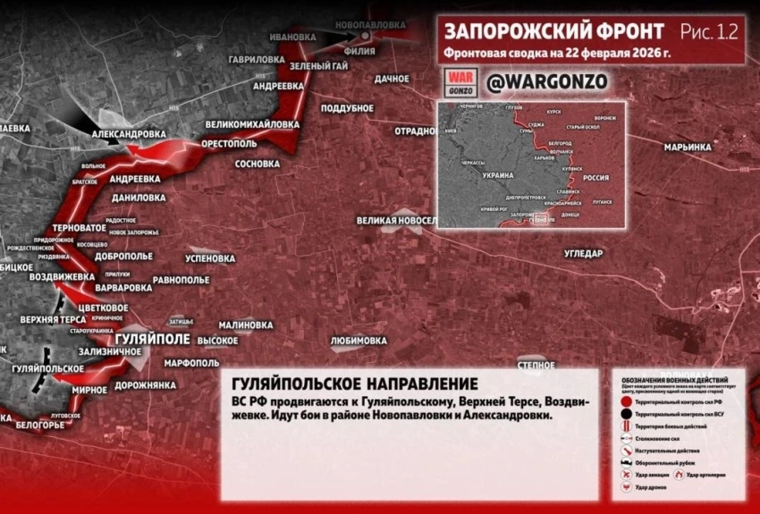 Бои сместились к северо-западным окраинам населённого пункта. Одновременно российские подразделения продвигаются к северо-востоку - в направлении Новоалександровки. Активность также отмечается в районе Белицкого, расположенного примерно в 20 километрах, где продолжаются атаки на позиции украинских сил.