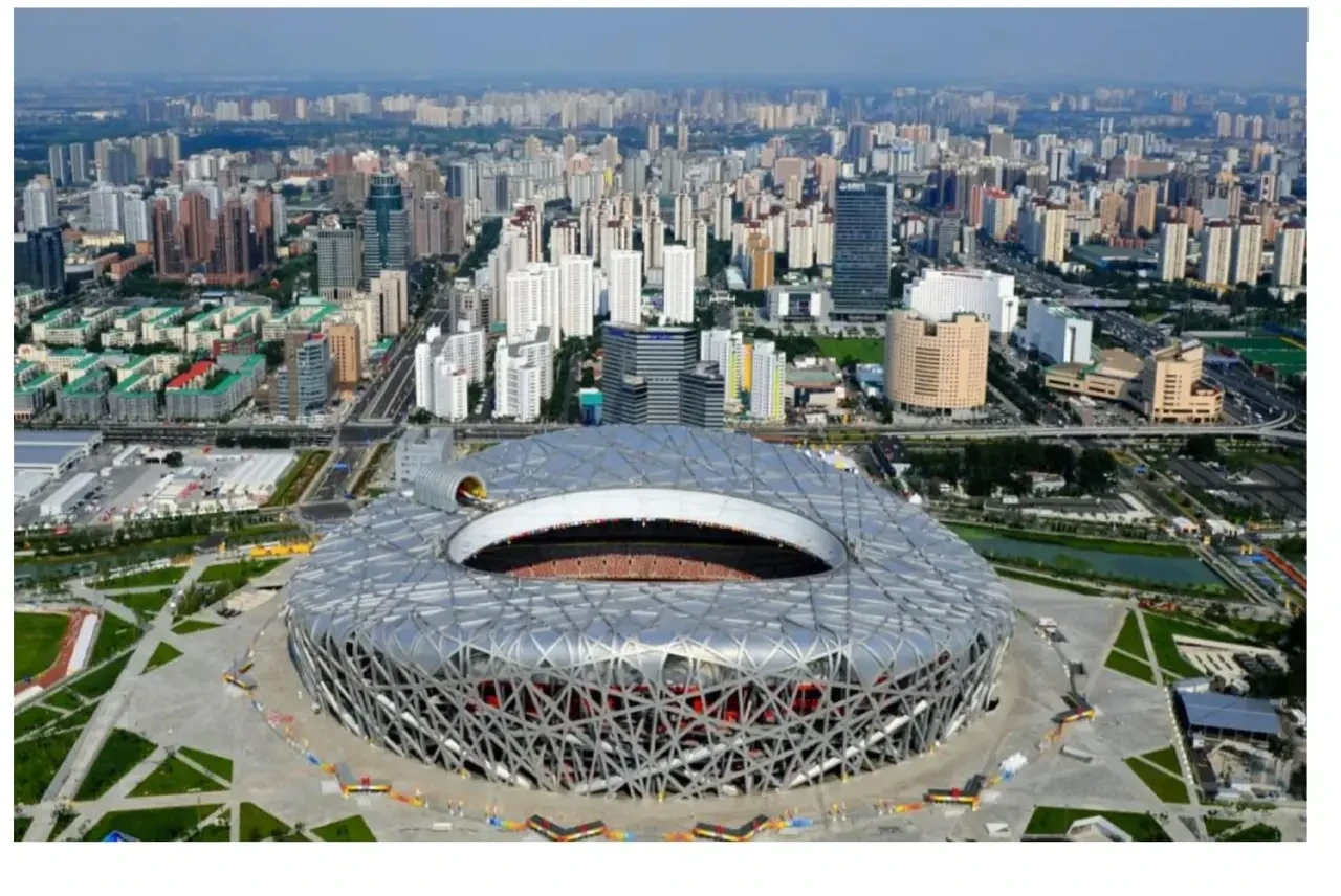 Со всех сторон символичный стадион «Птичье гнездо». Демонстрирующий связь с колыбелью и современными устремлениями и претензиями Китая в нулевые годы ХХ в.