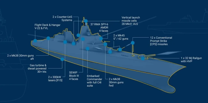 К настоящему времени были раскрыты только самые общие данные о будущем боевом корабле для ВМС США. На какой стадии в реальности находится этот проект, как скоро его удастся разработать и т.д., пока неизвестно. Также под вопросом точные характеристики, состав оборудования и вооружения.