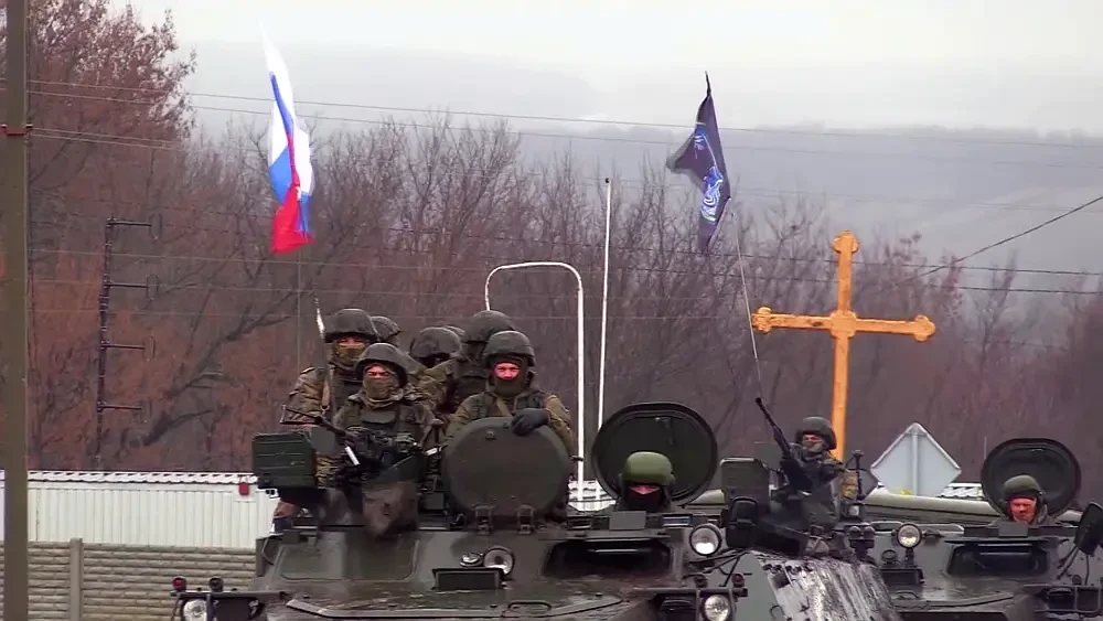 Похожий ролик с колоннами техники на дороге, обочинах и в населенных пунктах четыре года назад сняли бойцы Росгвардии. Новое в нем то, что показаны первые украинские военнопленные. Тогда они еще не представлялись поварами, санитарами и прочими «водителями».