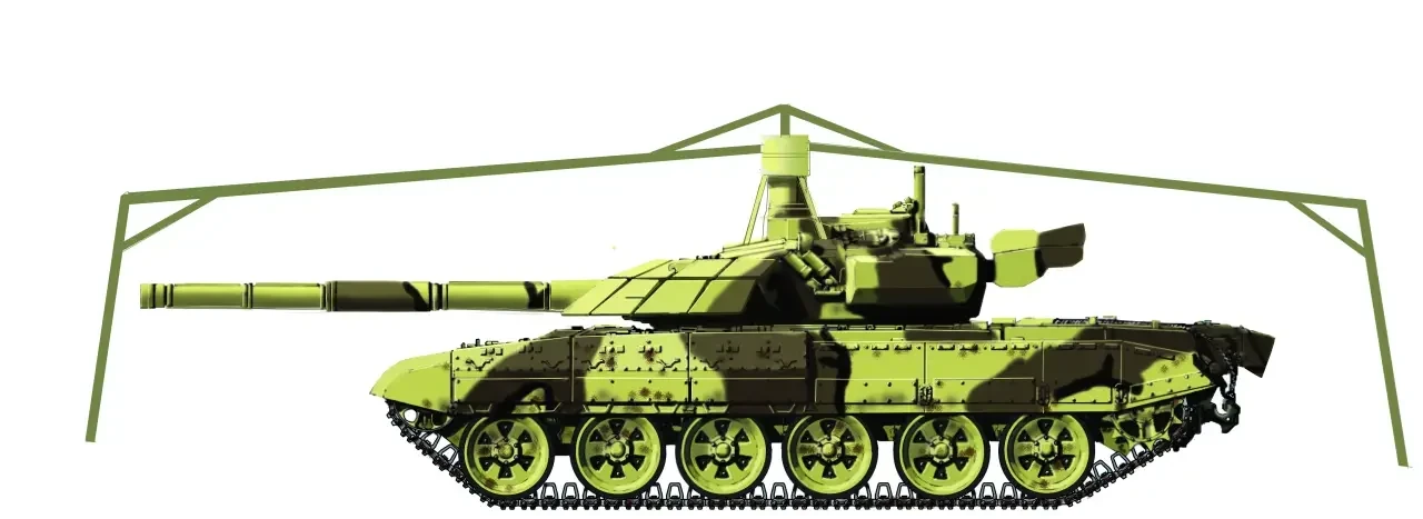 Так, в начале 50-х годов прошлого века, когда буквально только что появились французские противотанковые ракеты SS-11, у нас в СССР испытывалась система защиты танков опять-таки типа зонтика, надевавшегося на ствол танка и раскрывавшегося, когда ему угрожало поражение подобной ракетой. Дело не выгорело, но в целом идея верна. Что если накрыть танк куполом, но только не постоянным, из сетки, натянутой на крепления, а… из раскладных и, к тому же, вращающихся элементов наподобие вертолетного винта. В сложенном виде они уложены на башне. Но в случае угрозы со стороны дронов и по сигналу от радара «винт» раскрывается и начинает вращаться. Кромки лопастей заострены и способны перерубить пополам и дрон, и подлетающий к танку управляемый реактивный снаряд. Причем, поскольку лопасти эти вращаются очень быстро, наблюдению из танка их наличие совершенно не мешает – срабатывает эффект стробоскопа.