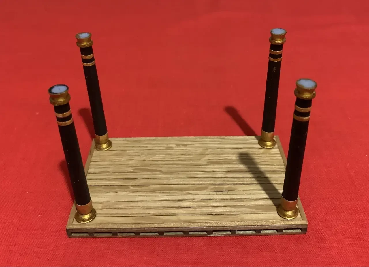 «Беседка» в собранном виде с крышей на столбах и фигуркой царицы на ложе