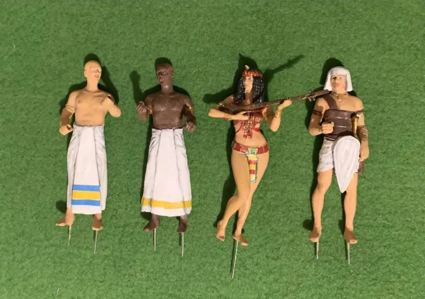 Понятно, что форма корпуса такой вот «сувенирной модели» должна была быть предельно вычурной, а дополнением к ней, причем очень важным, должны были быть фигурки египтян. Тут мне на помощь пришло руководство компании «Silver Dream Studio», которая как раз и производит в том числе и прекрасно расписанные фигурки египтян.