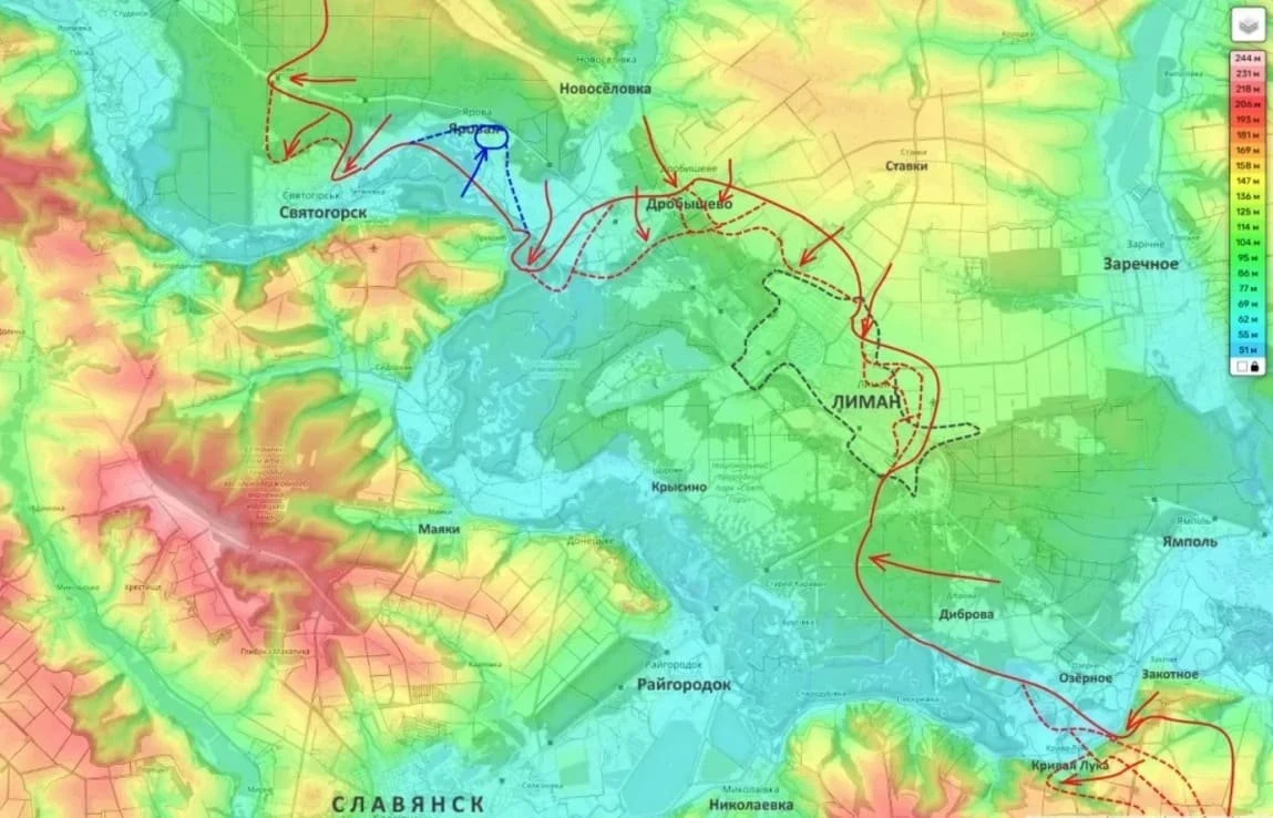 По оценке блогера, возможности противника удерживать оставшиеся кварталы города сокращаются. Усиливается давление севернее Святогорска. Потеря Дробышево делает уязвимыми позиции яровской и святогорской группировок.