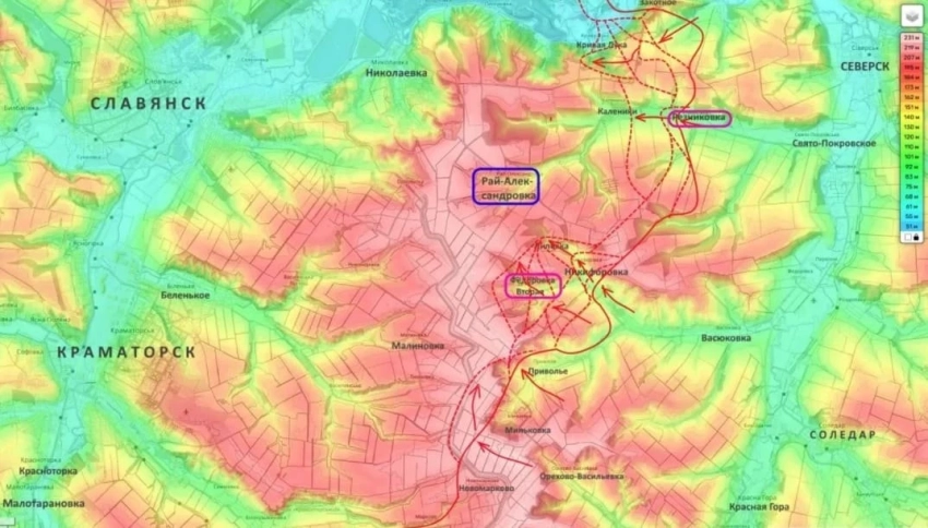Бойцы армии России добились новых успехов в зоне проведения СВО. В частности, продвигающиеся на Славянском направлении российские подразделения с трех сторон наступают на село Рай-Александровка, сообщил военный блогер Юрий Подоляка в видеообзоре, опубликованном в среду.