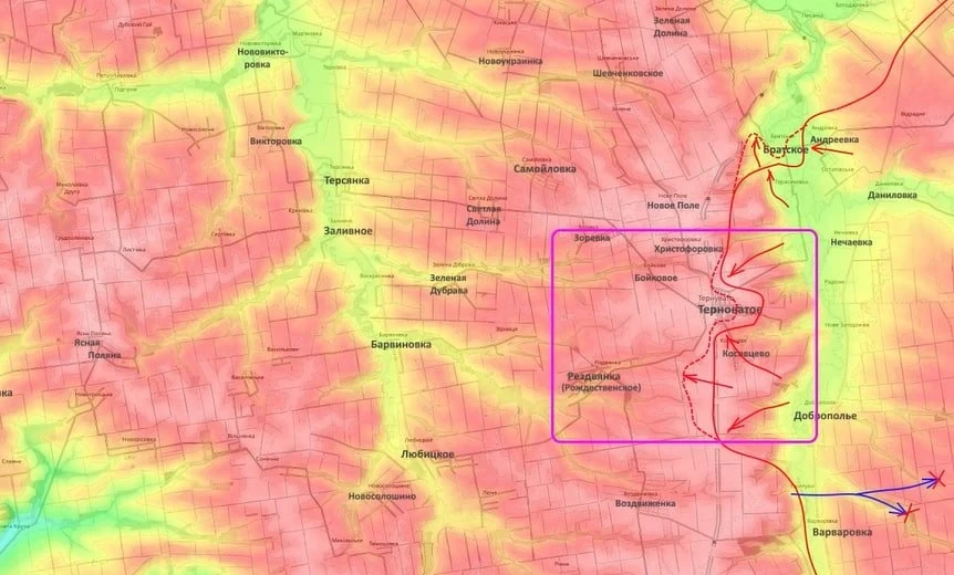 После завершения боев за Гуляйполе подразделения ВС РФ продолжают наступление в районе Терноватого, продвигаются в направлении Рождественского и Железнодорожного (Зализничное).
